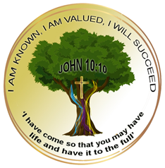 The icon has been developed from a student’s original design. The theological element of the vision is the roots of the tree. The house colours are the strength of the school community feeding through the trunk and the living aspect of our vision blossoms from the tree – being known, valued and ultimately succeeding within our school.