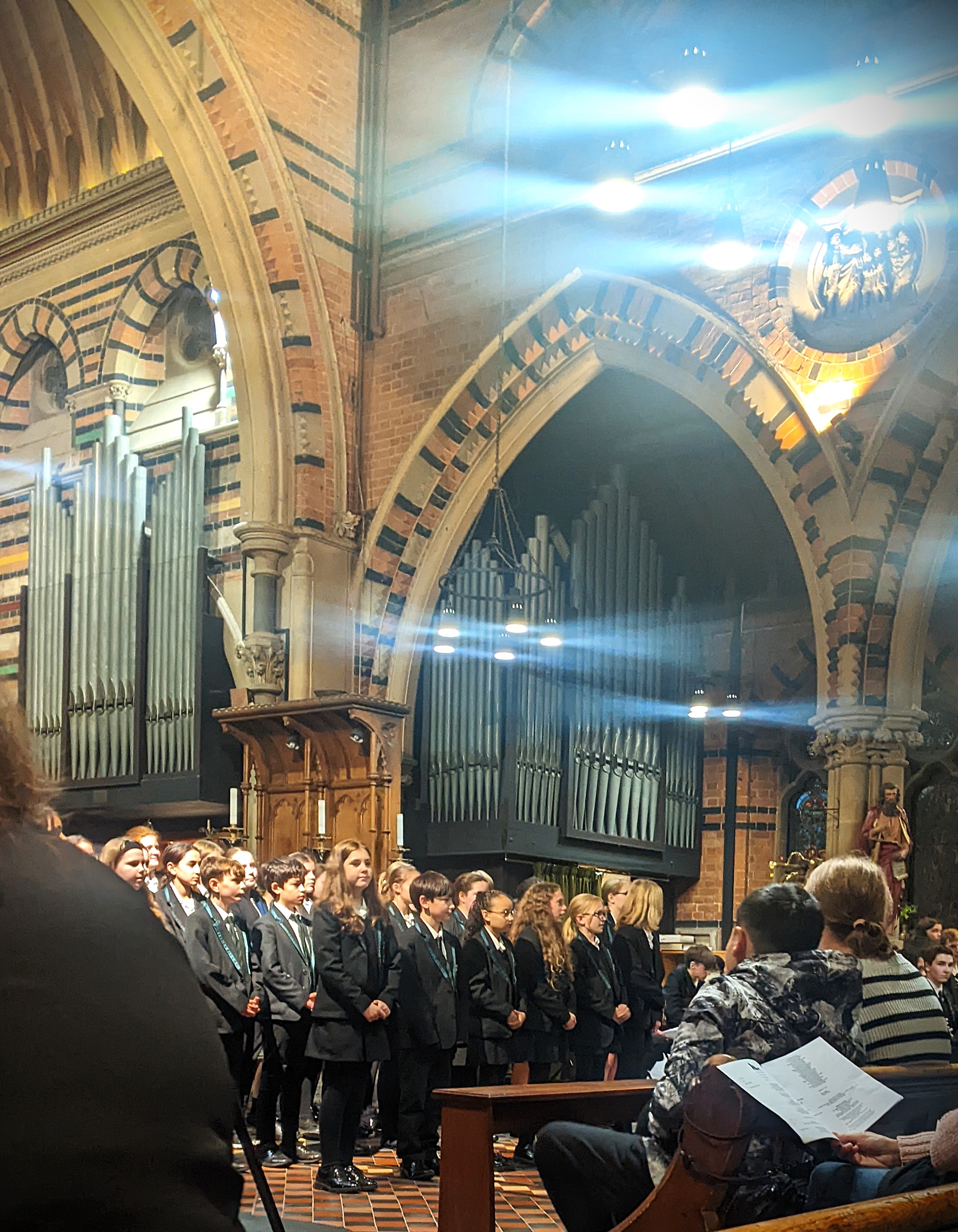 The Head of Music works closely with the organist from All Saints Church to plan music for the year. They hold regular meetings to discuss song choices and upcoming services. Altwood has proudly collaborated with the church choir for special events such as the VE Day service and Harvest Festival. Our annual Carol Service is held at All Saints Church bringing the school community together for a special start to the festive break. Rev. Jo organises the Christmas lunch, which the music department support as part of our wider engagement with the church community. Miss Rankine is also developing opportunities for students to engage with the church organ, including plans for an organ demonstration, a lunchtime concert, and an Altwood concert.
