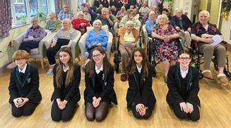 Students visit the residence of Larchfield care home during the festive season. They deliver Christmas cards and small gifts made by craft club. They also provide entertainment through excerpts for the Carol Service. |