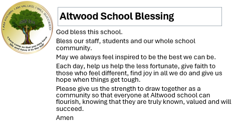 Our Chapel is located in the centre of the school, yet in a quiet corridor allowing for personal reflection and prayer. The Chapel can be available to staff and students throughout the school day. Part of the RE curriculum ensures that all students visit the chapel and understand its significance to life at Altwood. The Chapel provides a base for our Chaplain Rev Jo who runs our Chapel and Chat group during break and lunch on a Friday.